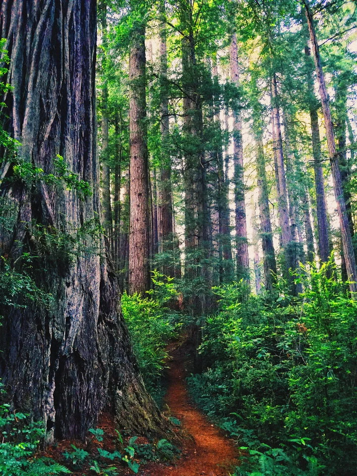 So at a parking lot I stopped to ask this guy what trail he’d recommend. He said, “take the trail called Miners. I’ve been to over 50 trails all over the U.S and this is by far my favorite. It leads out to a beautiful view of the sea.” Sounds great to me, so I enter the forest and begin the trail. I stop at what seems like every tree because they all looked so majestic. As I’m walking, I keep seeing groups of people coming back from the trail. It WAS getting a bit late (~7:40pm) so I decided to stop taking so many pictures and move onward to reach the view of the sea. (next few photos)